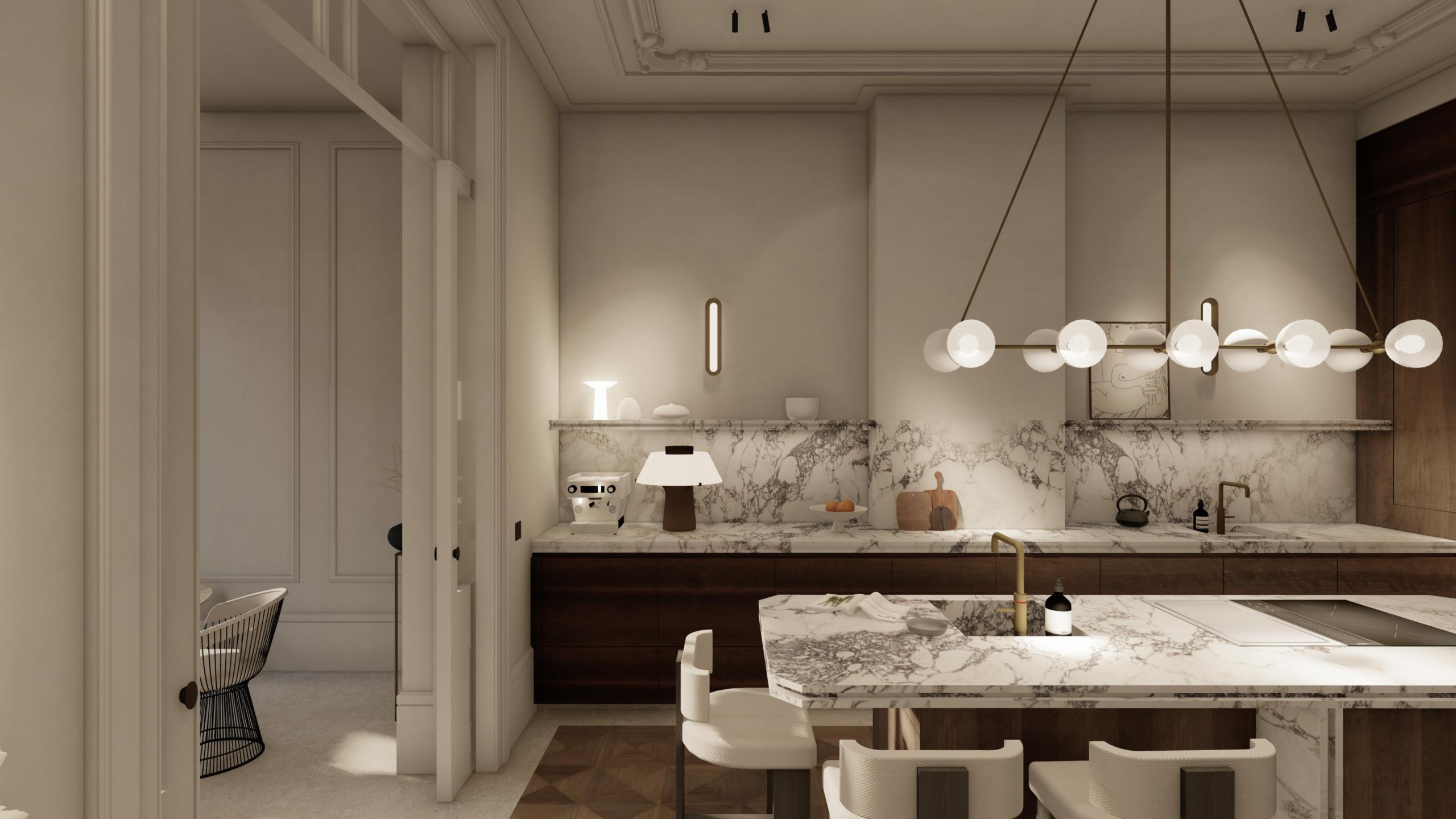 We transformeren een historisch stadshuis tot een tijdloos appartement dat een harmonieuze balans vindt tussen klassiek en eigentijds karakter. Door originele ornamenten te behouden en te accentueren, eren we het karakter van het gebouw, terwijl we een moderne, verfijnde esthetiek introduceren.